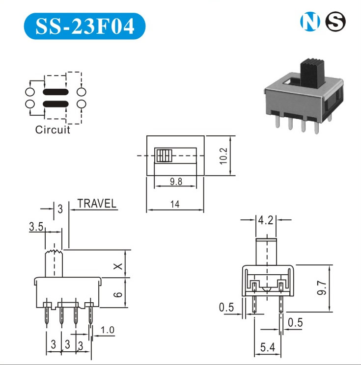 SS-23F04 详细资料 产品说明: 技术指标: 使用温度范围 -20~+70℃ 耐压 AC250V(50Hz)/min 额定负荷 DC 50V 0.5A 动作力 250±100gf 接触电阻 ≤0.05Ω 机械寿命 10000次 绝缘电阻 ≥100MΩ